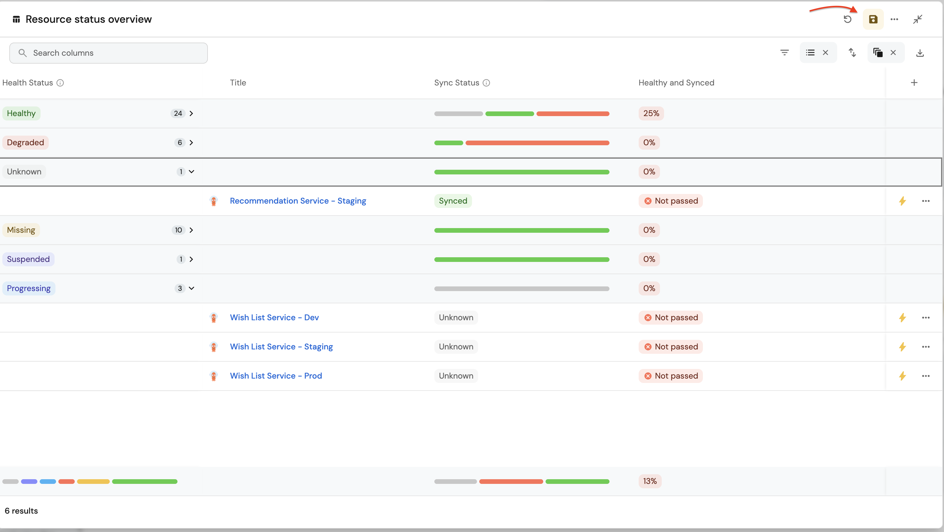 Resource health status overview (click to expand)
